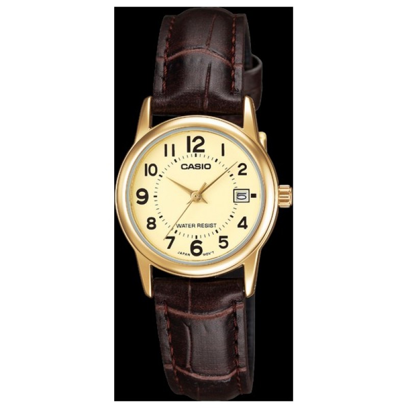 ساعة كاسيو للنساء LTP-V002GL-9BUDF - عرض بعقارب, سوار من الجلد - بني