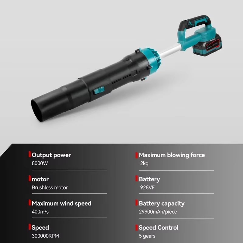 Ventilateur turbo électrique sans balais 8000W, 400M/S, souffleur de feuilles sans fil, outil de dép