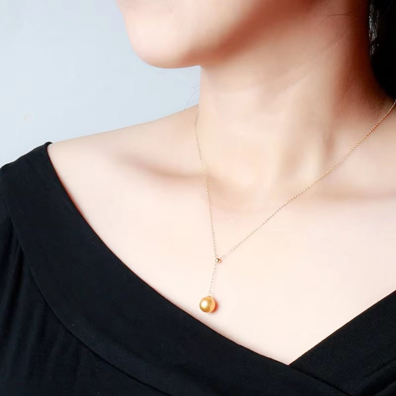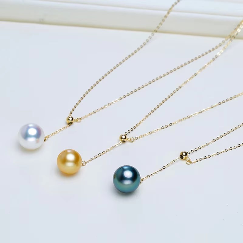 Akoya-collier de chaîne à perles en or 18 carats, pendentif en perles noires, collier pour femmes, c